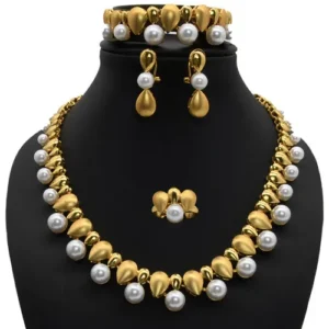 Explore the beauty of Dubai Jewelry collection at LaceDesign Workshop. Our African traditional culture brand offers an exquisite selection of handcrafted Dubai Jewelry pieces featuring unique designs that draw inspiration from the rich and vibrant culture and traditions of Dubai. Dubai Jewelry is known for its opulence and luxury, and our collection is no exception. Our Dubai Jewelry pieces are expertly crafted by skilled artisans using only the highest quality materials, including premium metals, gemstones, and other precious stones. Our jewelry collection includes necklaces, earrings, bracelets, and rings, in a range of styles, from classic and timeless to bold and contemporary, perfect for any occasion, from weddings to special events to everyday wear. Each piece in our collection is thoughtfully designed and crafted to add a touch of elegance and sophistication to your outfit. Shop now and enjoy free global shipping to add a touch of Dubai’s enchanting charm and luxury to your jewelry collection.