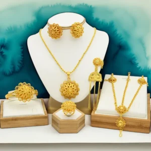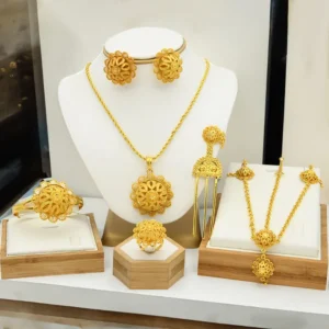 Make your special day even more memorable with our collection of exquisite Wedding Jewelry at LaceDesign Workshop. Our African traditional culture brand offers a wide selection of handcrafted jewelry pieces inspired by the rich and vibrant culture and traditions of Africa. Our Wedding Jewelry collection includes necklaces, bracelets, earrings, and rings, each one carefully crafted by skilled artisans using the finest quality materials, including gold, silver, and precious gemstones. Our collection includes a range of designs, from classic and timeless to bold and contemporary, suitable for any style and wedding theme. Our jewelry pieces add a touch of elegance and sophistication to any bridal look, complementing the wedding dress to perfection. You can also find jewelry sets for bridesmaids and wedding guests. Our jewelry pieces are perfect for future use, ensuring that you can treasure them for years to come. Shop now and enjoy free global shipping to add a touch of charm and luxury to your special day.