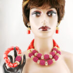 African fashion in Nigerian wedding Jewelry set Necklace Earrings JW1408