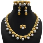Indulge in luxury with this exquisite Necklace Set, perfect for wedding parties. With its opulent design and superior craftsmanship, this set features a necklace, bracelet, earrings, and ring. Make a lasting impression and elevate your style with this luxurious jewelry set.”