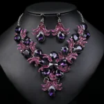 Crystal jewelry set purple necklace earrings CM1037
