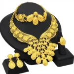 Indulge in luxury with this exquisite Necklace Set, perfect for wedding parties. With its opulent design and superior craftsmanship, this set features a necklace, bracelet, earrings, and ring. Make a lasting impression and elevate your style with this luxurious jewelry set.”