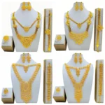 Enhance your African wedding ensemble with this glamorous Dubai Gold Jewelry Set. Crafted with meticulous attention to detail, this set exudes elegance and sophistication. Make a grand entrance and shine bright on your special day.”