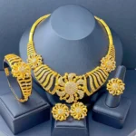 Indulge in luxury with this exquisite Necklace Set, perfect for wedding parties. With its opulent design and superior craftsmanship, this set features a necklace, bracelet, earrings, and ring. Make a lasting impression and elevate your style with this luxurious jewelry set.”