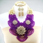 Enhance your bridal look with this classic Nigerian Wedding Bridal Jewelry. The African crystal beads jewelry set adds a touch of elegance and cultural significance to your wedding ensemble, creating a timeless and beautiful look.