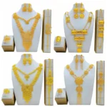 Enhance your African wedding ensemble with this exquisite Dubai Gold Jewelry Set. Crafted with precision and attention to detail, this elegant set exudes sophistication and charm. Make a lasting impression and elevate your style with this perfect accessory for African wedding parties.”