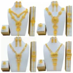 Enhance your African wedding ensemble with this glamorous Dubai Gold Jewelry Set. Crafted with meticulous attention to detail, this set exudes elegance and sophistication. Make a grand entrance and shine bright on your special day.”