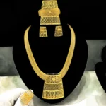 Indulge in luxury with this exquisite Necklace Set, perfect for wedding parties. With its opulent design and superior craftsmanship, this set features a necklace, bracelet, earrings, and ring. Make a lasting impression and elevate your style with this luxurious jewelry set.”